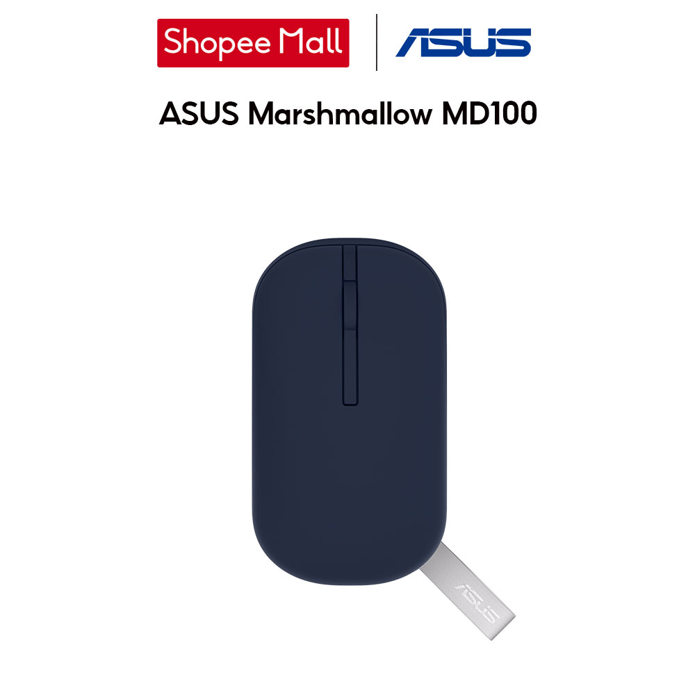 THÔNG TIN SẢN PHẨM Thông số kỹ thuật • Model ASUS Marshmallow Mouse MD100 • Connectivity Wireless • RF 2.4GHz • Bluetooth • RF Distance 10m • Tracking Optical • Hệ điều hành Windows® 10 • Chrome OS • Windows® 11 • macOS 12 • Kích thước Chuột: 107 x 60 x 27.8 (mm) • Dongle: 18.9 x 12 x 4.5 (mm) • Dây đeo: 70 x 11 x 0.7 (mm) • Trọng lượng 56g • Màu sắc • DPI 800DPI • 1000DPI • 1600DPI • Loại pin 1x AA