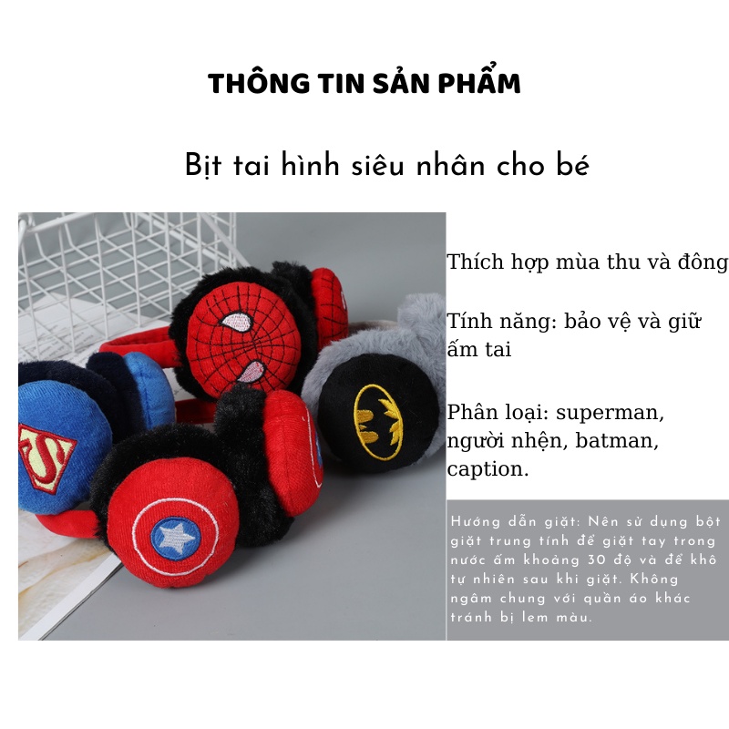 Thời Trang Trẻ Em > Phụ kiện trẻ em > Bịt tai > Chụp tai giữ ấm mùa đông cho bé trai, bịt tai trẻ em siêu nhân người nhện batman caption chất liệu cao cấp Xu Xu Kids