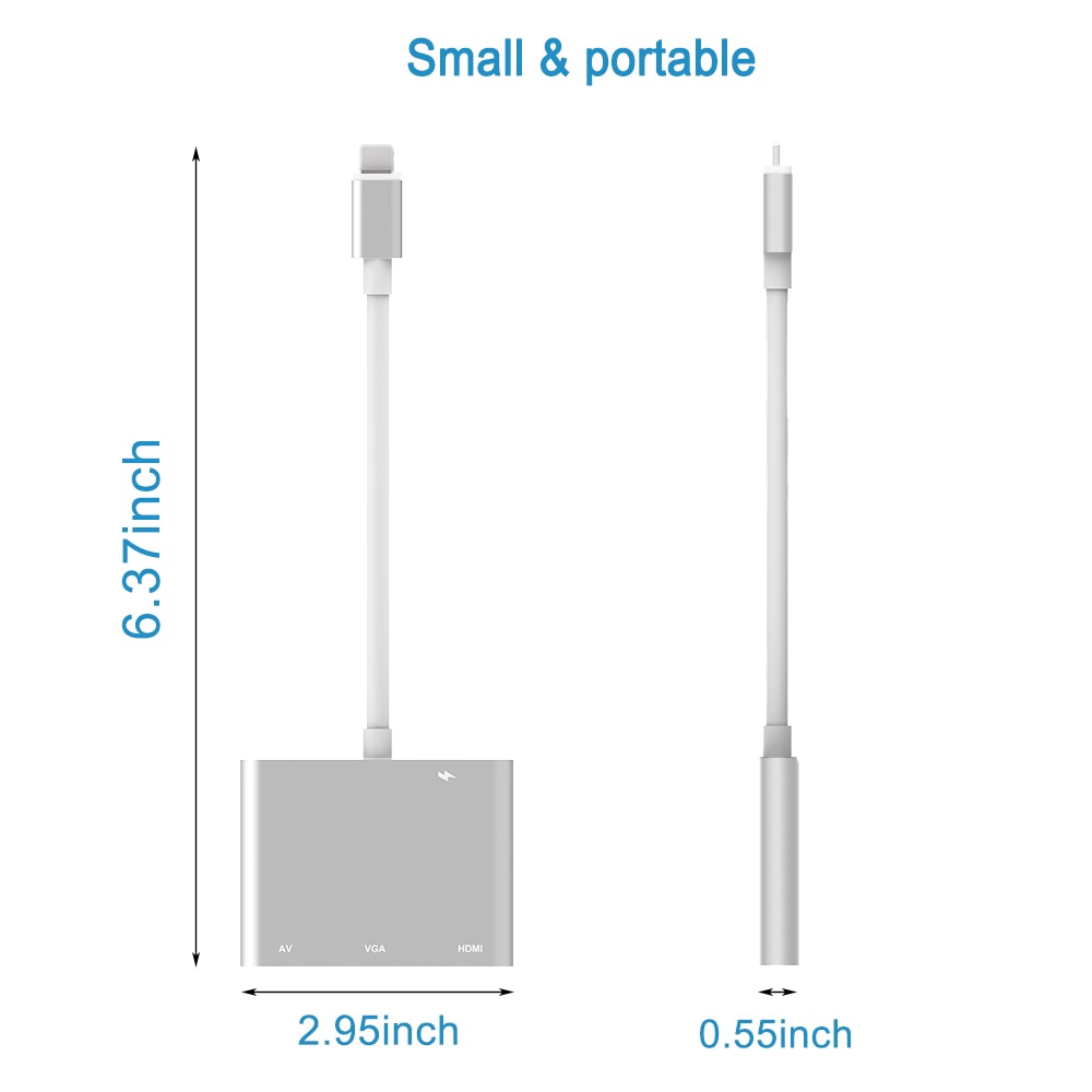 Tổng quan sản phẩm: 1. Bộ chuyển đổi cổng sạc Lightning sang HDMI/ VGA/AV/HDTV/OTG 2. Tương thích với: Dành cho iPhone X/XR/XS/XSMAX/8/7/6, dành cho iPad/iPod Touch 3. Siêu tốc độ, dễ sử dụng chỉ cần cắm và chạy, không cần ứng dụng 4. Sử dụng bộ chuyển đổi này cho iPhone hoặc iPad hoặc iPod Touch để thưởng thức các trò chơi giải trí nội bộ hoặc trực tuyến yêu thích của bạn một cách dễ dàng trên HDTV hoặc máy chiếu của bạn với màn hình HD lên đến 1080p. 5. Hỗ trợ chương trình truyền hình, nhạc, video, âm thanh, hình ảnh,v.v. từ Youtube, trình duyệt IE, trình duyệt Chrome, v.v. 6. Hỗ trợ iOS 9.2-12.1 ở trên 7. Màu sắc: Vàng / Bạc / Vàng hồng / Xám 8. Bộ chuyển đổi dành cho cổng Lightning sang HDMI/VGA/AV hỗ trợ phản chiếu màn hình thiết bị của bạn - bao gồm ứng dụng, bài thuyết trình, trang web, trình chiếu, v.v. - trên TV được trang bị HDMI/VGA/AV của bạn, màn hình, máy chiếu hoặc các màn hình tương thích khác hỗ trợ HD 1080P . 9. Cũng có thể xuất nội dung video - phim, chương trình TV, video đã quay - ra màn hình lớn của bạn ở độ phân giải HD lên đến 1080P. Chỉ cần kết nối bộ chuyển đổi Lighting sang HDMI/VGA/AV của bạn với giao diện Lighting trên thiết bị của bạn và sau đó sử dụng bất kỳ cáp HDMI/VGA/AV nào để kết nối nó với TV hoặc máy chiếu.