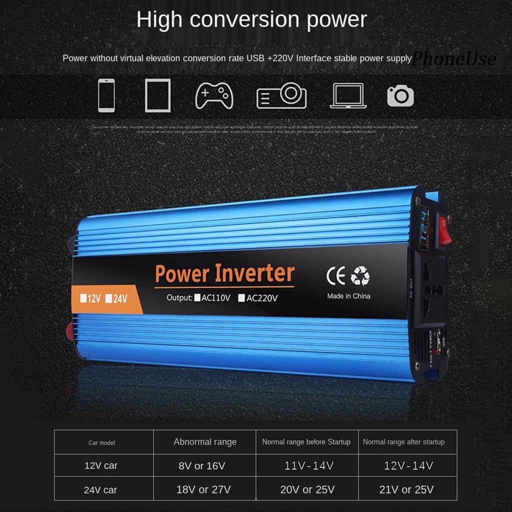 Ô Tô & Xe Máy & Xe Đạp > Phụ kiện bên trong ô tô > Bộ sạc USB, Bộ phát FM & Bluetooth > Bộ Chuyển Đổi Nguồn Điện Thông Minh Cho Xe Hơi 1200W 12 / 24 / 36 / 48 / 60V Sang 220V