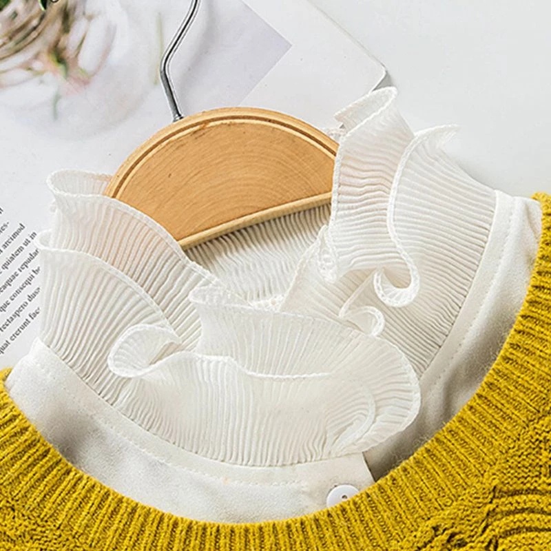 Giới thiệu Cổ Áo Ren Giả Phối Bèo Nhún Giả Màu Trắng Thời Trang Thanh Lịch Cho Nữ
