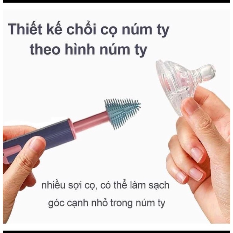 Cọ bình sữa Silicon cao cấp tay cầm xoay 360 độ dùng cho mọi loại bình