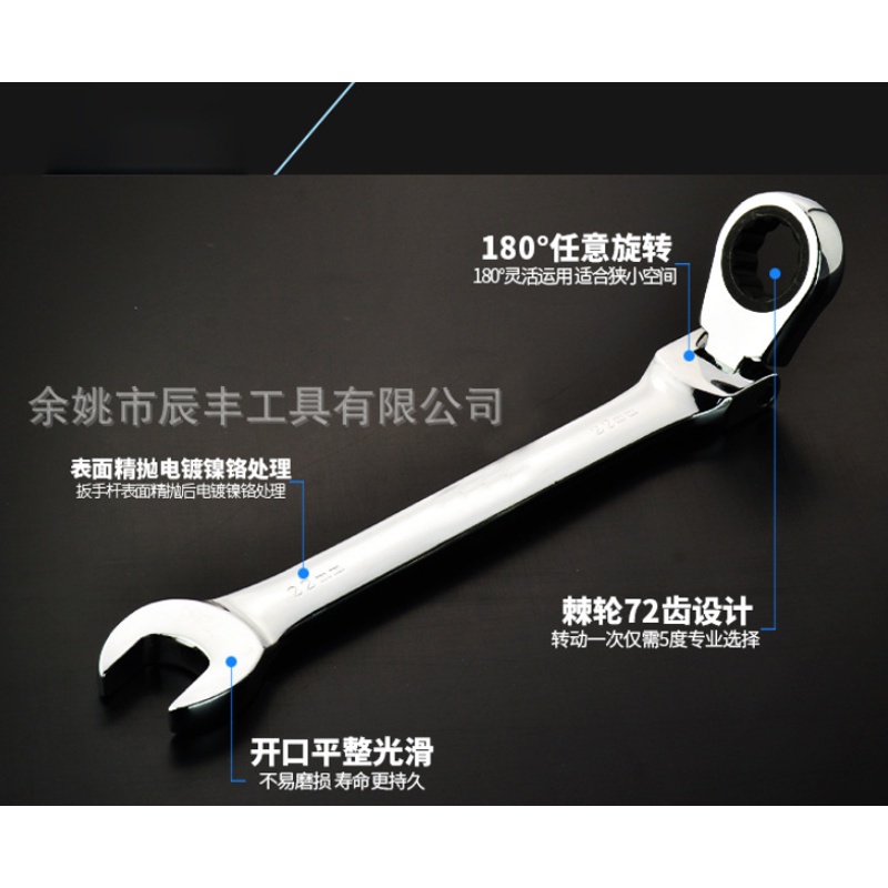 13 '15 '19mm CRV72 Có thể xoay linh hoạt cho đầu Ratchet Spanner Sử dụng kép Đầu mở và Kết hợp Ratcheting kết hợp 72 răng Dụng cụ cầm tay sửa chữa cờ lê Mô tả '