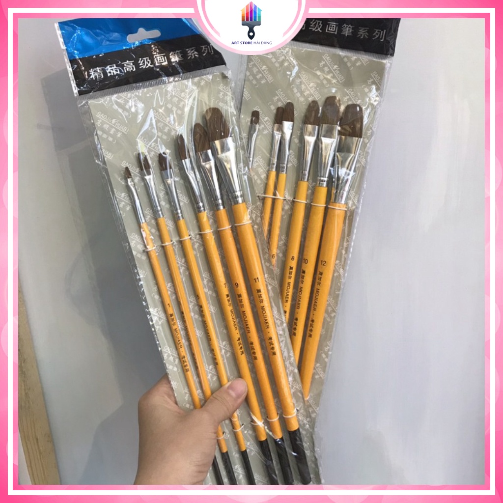 Giới thiệu Bộ cọ lông chồn 6 cây có vỏ lông mềm❤️ thân vàng cứng