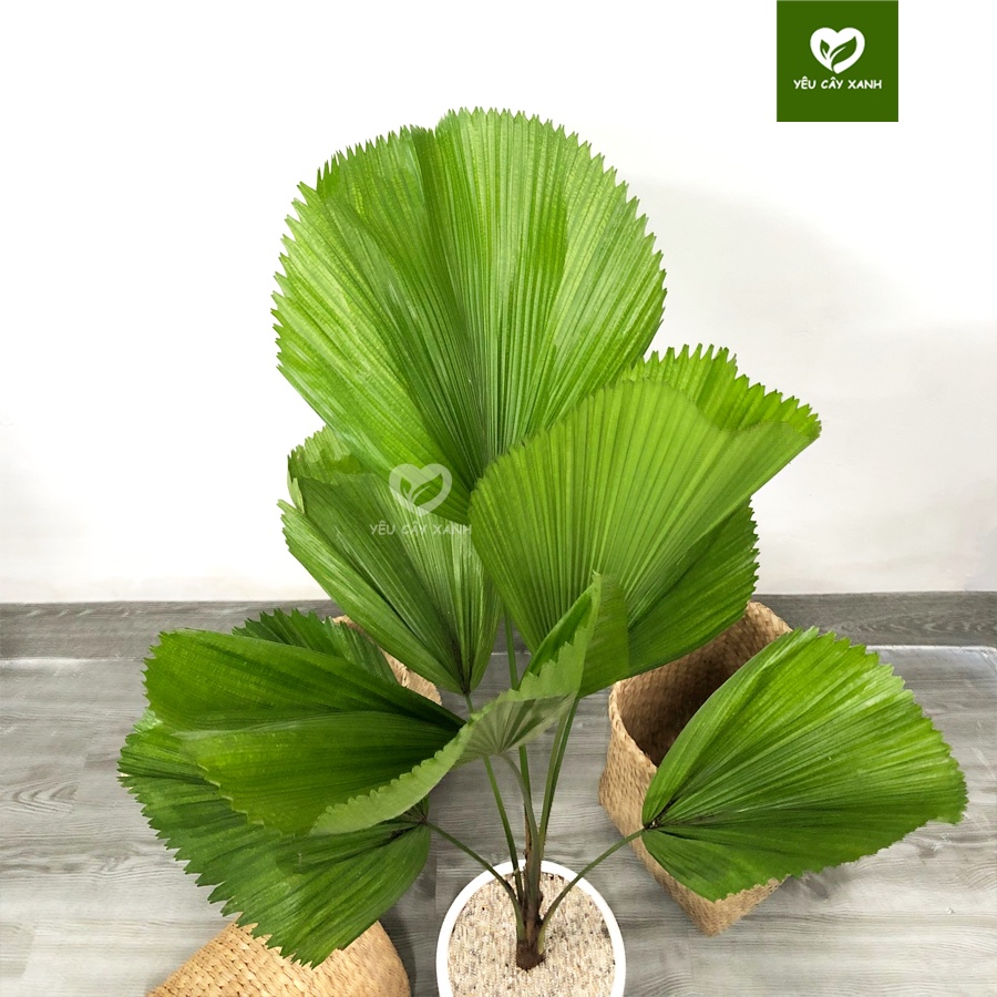 🍃 THÔNG TIN SẢN PHẨM - Đặc trưng: + Là loài cây thân gỗ, thuộc họ Cau. + Các nhánh cây nhỏ và mỏng, mọc tập trung ở ngọn. Phía đầu nhánh là lá cây có hình dáng xòe ra như chiếc quạt, màu xanh thẫm đẹp mắt. Mép lá có nhiều răng cưa cạn, mặt lá có các đường gân xếp thành nếp đều nhau rất đẹp. + Cây có khả năng chịu được ánh sáng. - Kích cỡ: Cao khoảng 100 - 120cm - Công dụng: + Thanh lọc không khí, hấp thụ khí độc, tạo sự xanh mát cho không gian nhà ở. - Ý nghĩa phong thủy: + Cây mang lại sự may mắn trong cuộc sống, thăng tiến trong công việc, sự nghiệp. + Đặc biệt, cây rất phù hợp với người mệnh Mộc, Thủy, Hỏa, Thổ.