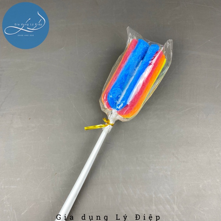 Chất liệu đầu mút xốp mềm mại không gây xước ly chén, tay cầm nhựa dài dễ thao tác vệ sinh