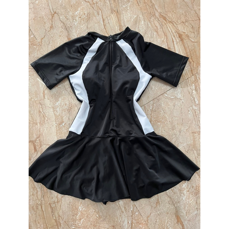 Giới thiệu CÓ SIZE, Bikini đi biển chống nắng- đồ bơi học sinh liền váy kín đáo tay ngắn phối sọc xanh ❤️Cam kết 100% sản phẩm y hình