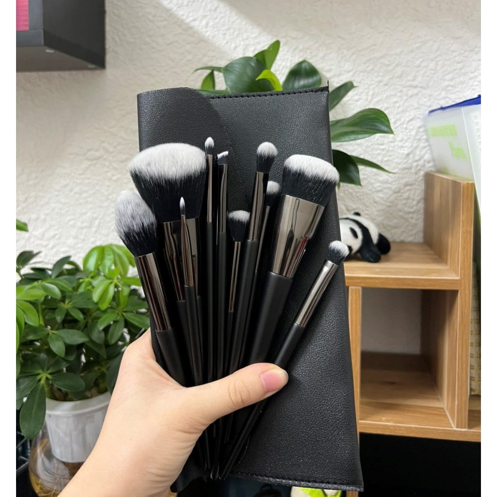 Giới thiệu Bộ Cọ Trang Điểm 11 Cây Đen Chắc Chắn Siêu Mền Mượt Ăn Phấn Kèm Túi Da
