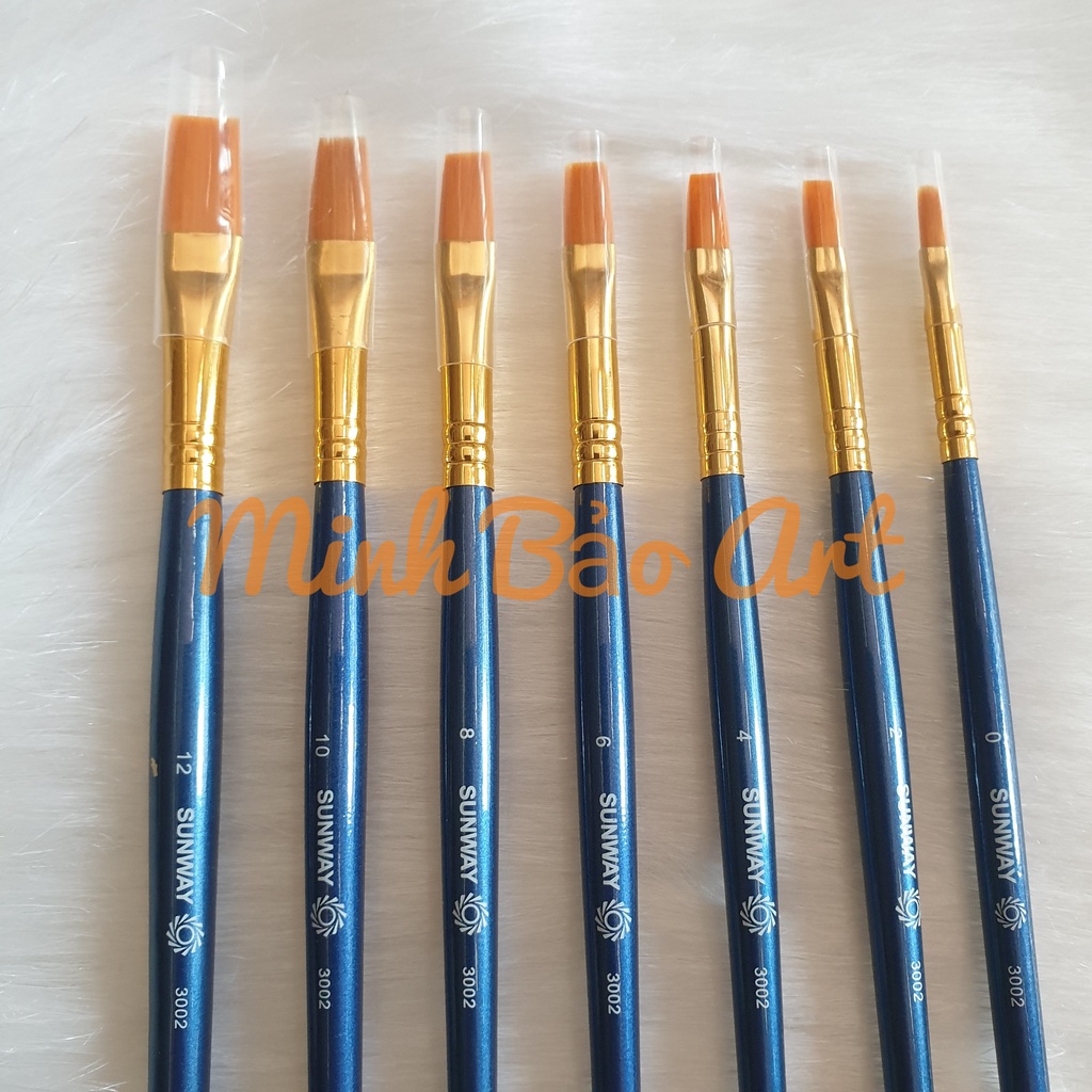 Giới thiệu CỌ VẼ MÀU NƯỚC, ACRYLIC, SƠN DẦU ĐẦU DẸT SUNWAY 3002