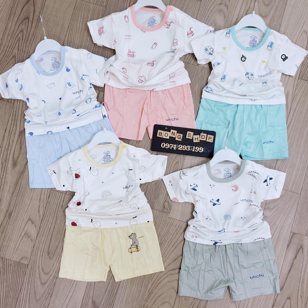 Giới thiệu Bộ cộc cài vai in họa tiết Unchi mẫu 2023 vải thun lạnh mềm mịn mát bé trai bé gái 6m-24m