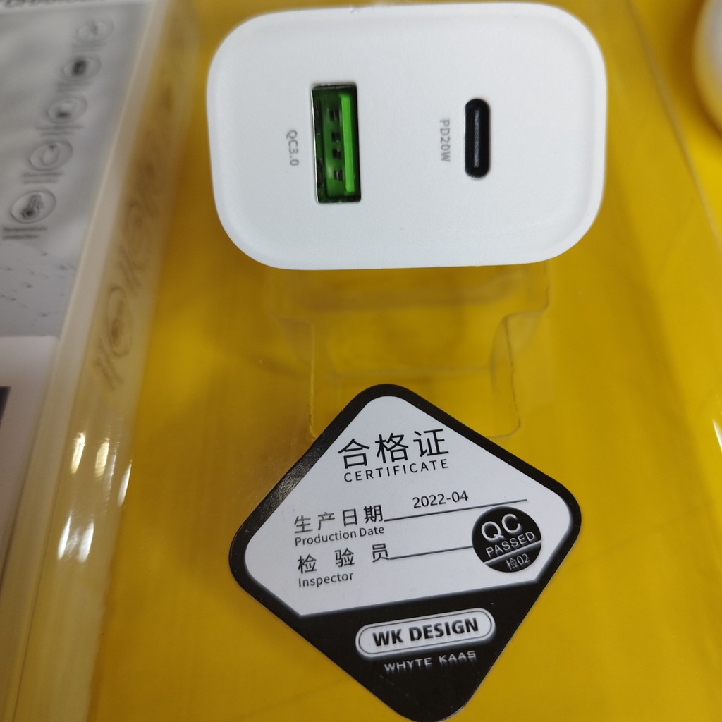 MÔ TẢ SẢN PHẨM: CÓC SẠC NHANH 20W WK Hàng chính hãng - Sạc nhanh cho tất cả các dòng máy 20W-3A ----------------------------------------- - Thiết kế nhỏ gọn, hoàn thiện. - Sạc nhanh với công xuất 18w - Chip thông minh bảo vệ an toàn cho thiết bị. - Chất liệu chống cháy, vỏ PC chất lượng cao, bền bỉ. - Bảo hành lỗi do nhà sản xuất