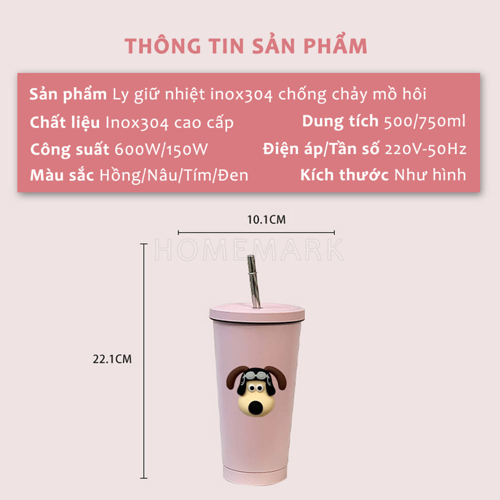 Nhà Cửa & Đời Sống > Dụng cụ pha chế > Chén, cốc & kính > Cốc Giữ Nhiệt, Ly Giữ Nhiệt Gấu Cún Màu Pastel Chất Liệu Thép Không Gỉ Hai Lớp Kèm Ống Hút Dung Tích 500ml, 750ml