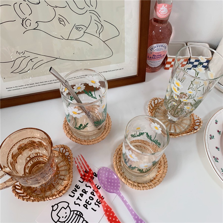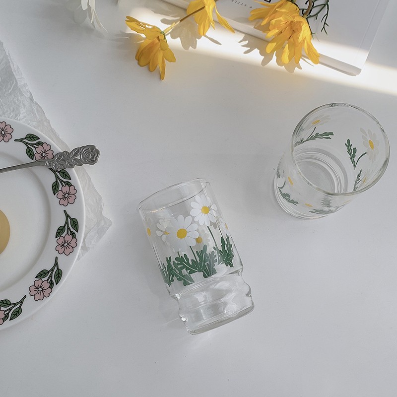 Giới thiệu Cốc, Ly Thủy Tinh Uống Trà, Cafe Hình Hoa Cúc Trắng Daisy Aesthetic Decor
