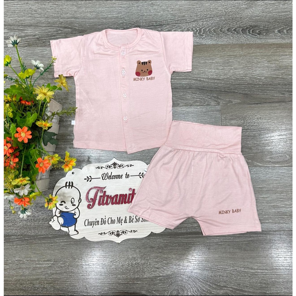 Bô cộc minky cúc giữa cạp cao in hình mèo Xinh xỉu với em này thôi các mẹ ơi Chất vải thun lạnh mềm, mịn, mát mặc hè