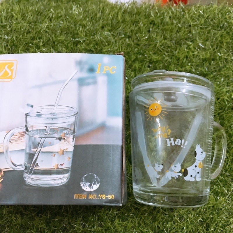 CỐC PHA SỮA THUỶ TINH CHIA VẠCH SIÊU TIỆN LỢI CÓ NẮP VÀ ỐNG HÚT CHO BÉ