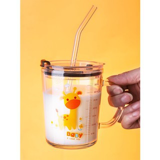 Giới thiệu Cốc pha sữa uống nước thuỷ tinh chia vạch có nắp và kèm ống hút