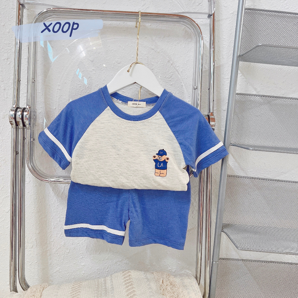 Giới thiệu Bộ cộc phối tay XOOP cotton vân gỗ in gấu cho bé trai bé gái (11-21kg) BC70,Đồ bộ thời trang quần áo trẻ em mặc nhà
