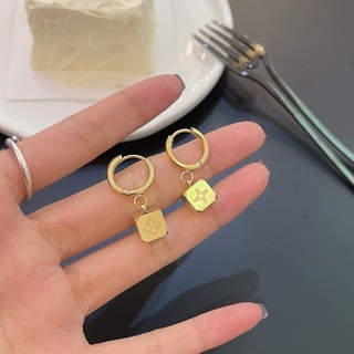 Bộ Dây Chuyền + Bông Tai Bằng Thép Titan Cao Cấp Mặt Vuông Đơn Giản Thời Trang Cho Nữ