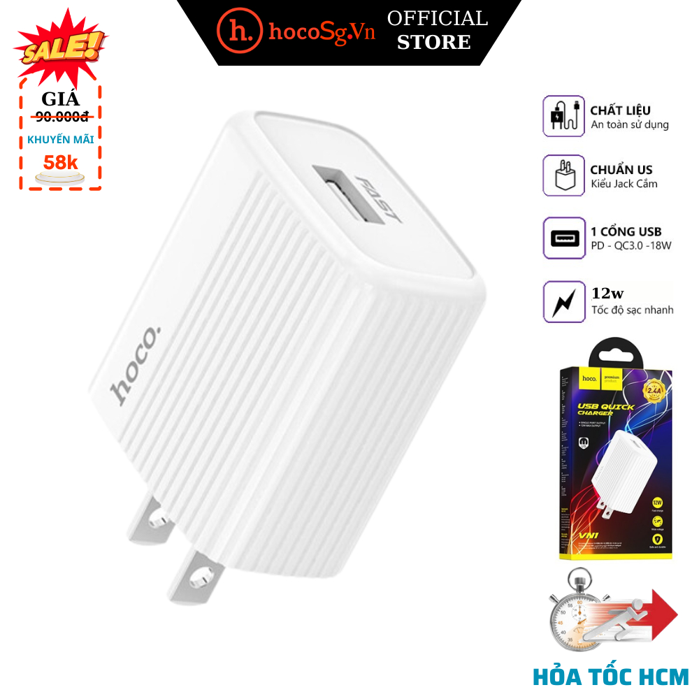 THÔNG TIN SẢN PHẨM - Thương hiệu: Hoco - Đầu vào: : AC100-240V, 50 / 60Hz, 0.4A. - Đầu ra: USB-A 1/2: 5V / 2.4A, tổng đầu ra: 5V / 2.4A - Chất liệu: Nhựa PC chống cháy - Kích thước: 61*42*26mm, trọng lượng: 54g - Cổng giao tiếp: USB