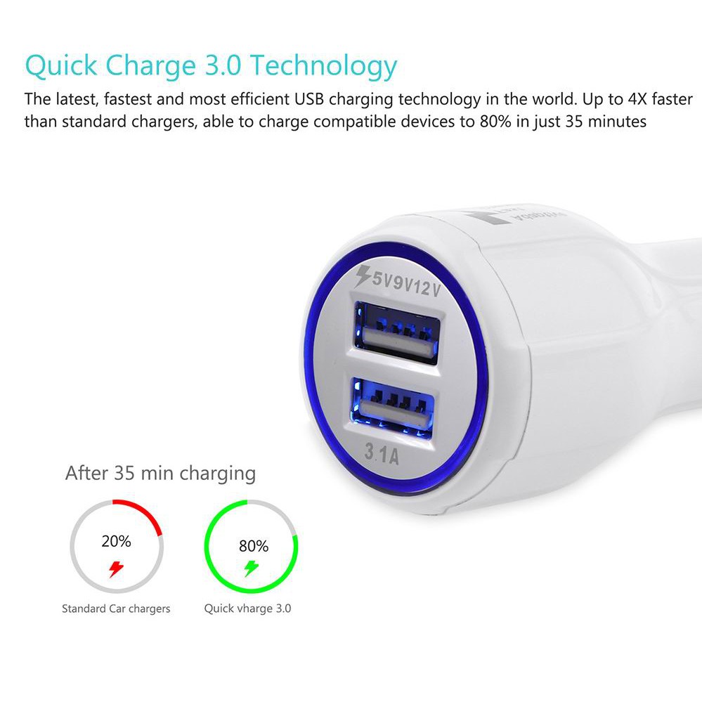 Cốc Sạc Nhanh Ô Tô,Tẩu Sạc Xe Hơi Qualcom 12V, Sạc Xe Ô Tô Siêu Nhanh An Toàn 2 Cổng USB 3.0 Đèn Led Cắm Tẩu