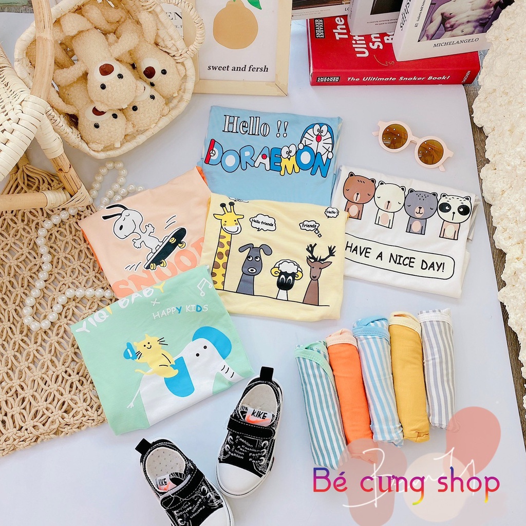Giới thiệu Bộ cộc tay cho bé trai bé gái, Bộ cộc tay Minky mom chính hãng thun lạnh họa tiết hình cho bé từ 7 - 20kg