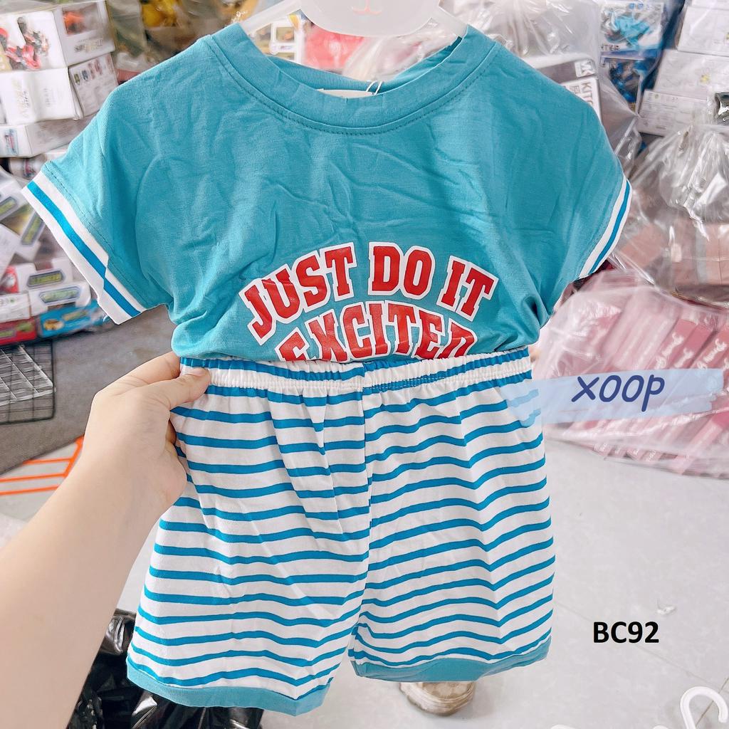 Bộ cộc tay XOOP cotton lụa in chữ just,quần kẻ cho bé trai bé gái (12-24kg) BC92,Đồ bộ thời trang quần áo trẻ em mặc nhà,đi chơi,du lich