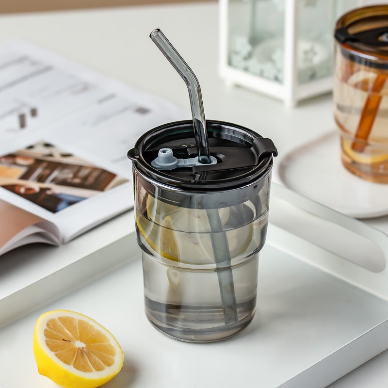 Giới thiệu Cốc Thủy Tinh Chịu Nhiệt Đơn Giản Có Ống Hút Tiện Dụng Cho Văn Phòng/ Trà Sữa