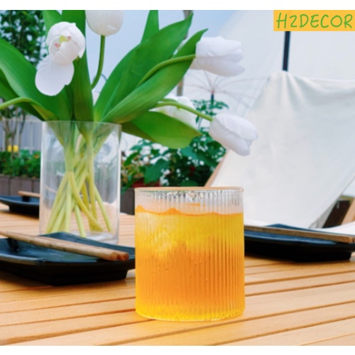 Giới thiệu Cốc Thuỷ Tinh Trong Suốt Hoạ Tiết Kẻ Sọc-H2DECOR