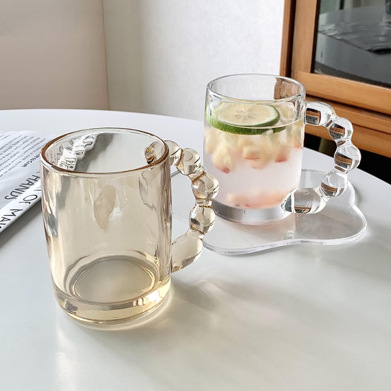 Nhà Cửa & Đời Sống > Dụng cụ pha chế > Chén, cốc & kính > Cốc thuỷ tinh uống nước quai ngọc trai to kiểu mới sang trọng, ly đựng nước thuỷ tinh K-House Smart