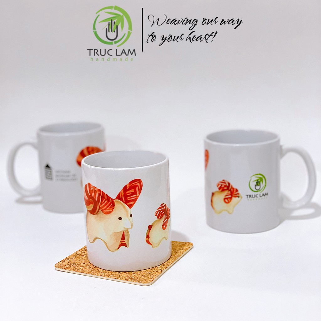 Giới thiệu Cốc Uống Nước Có Quai Cầm Chất Liệu Sứ Bát Tràng In Hình 2 Con Dê - Trúc Lâm Handmade