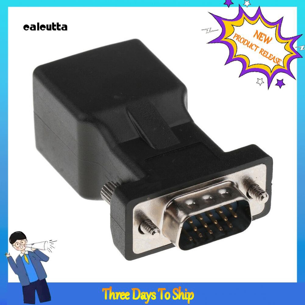 Giới thiệu ✡COD✡2Pcs 15 Pin VGA Male to RJ45 Female Ethernet Adapter Connector LAN Extender