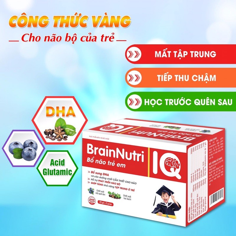 Cốm bổ não trẻ em Brain Nutri IQ giúp bổ sung omega 3 và vitamin cần thiết cho não giúp phát triển não bộ ở trẻ em