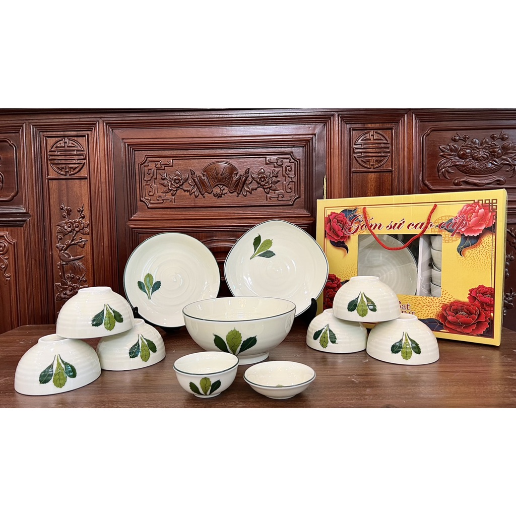 Bộ đồ ăn Bát Tràng được làm từ chất đất cao cấp tạo nên sản phẩm có màu trắng trong đẹp mắt. Họa tiết hoa văn mềm mại, tinh tế, bắt mắt rất phù hợp với không gian bếp của gia đình bạn