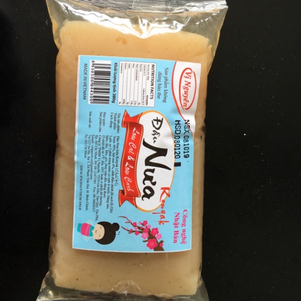 Hạn Sử dụng: 03 tháng kể từ ngày sx xứ Việt Nam. Sản phẩm được làm từ bột củ Konjac, tiếng Việt gọi là củ khoai Nưa. Bún nưa (shirataki) là loại thực phẩm không năng lượng, không carb, ăn no mà không mập. Bún nưa được tạo thành từ 97% là nước, pha với bột nưa đã được tính chế. Mì nưa (tofutaki) là loại thực phẩm không năng lượng, không carb, ăn no mà không mập. Mì nưa giống bún nưa, nhưng thành phần có pha thêm sữa đậu nành, nên cọng mì mềm hơn. Đậu nưa (konyak) là loại thực phẩm không năng lượng, không carb, ăn no mà không mập. Đậu nưa không kéo sợi, mà được sản xuất nguyên khối. Thành phần chính cũng bao gồm 97% là nước và bột nưa đã được tinh chế Sản phẩm do Công ty Vị Nguyên sản xuất.