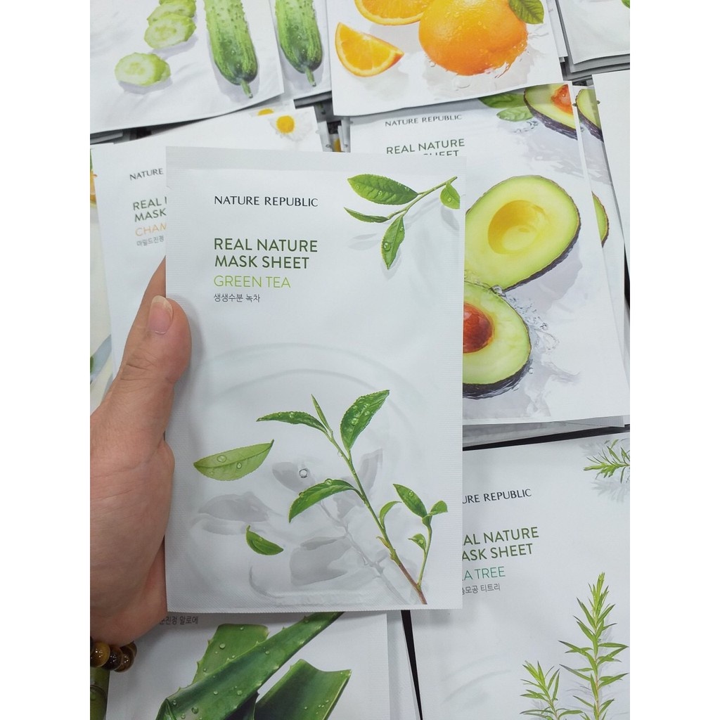 Sắc Đẹp > Chăm sóc da mặt > Mặt nạ > Combo 10 Mặt Nạ Thiên Nhiên Cung Cấp Dưỡng Chất Cho Da Chiết Xuất Trã Xanh Nature Republic Real Nature Mask 23mlx10