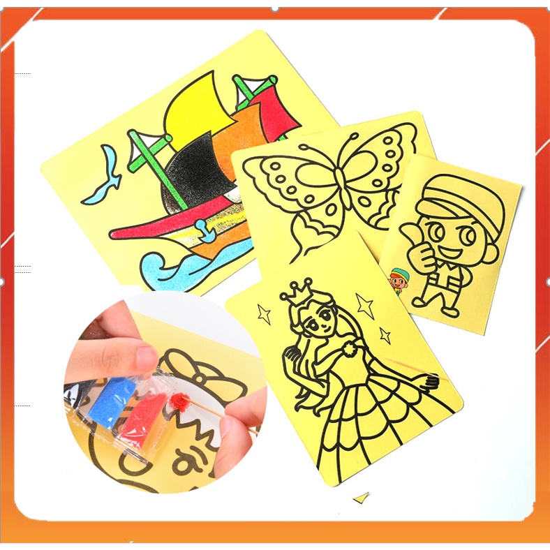 Combo 10 tranh cát tô màu 3d 16x12cm - đồ chơi tranh cát vẽ màu nhiều chủ đề cho bé yêu thỏa sức sáng tạo