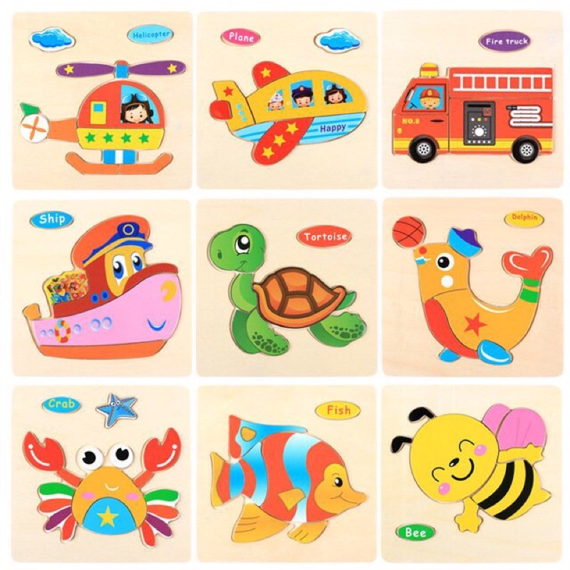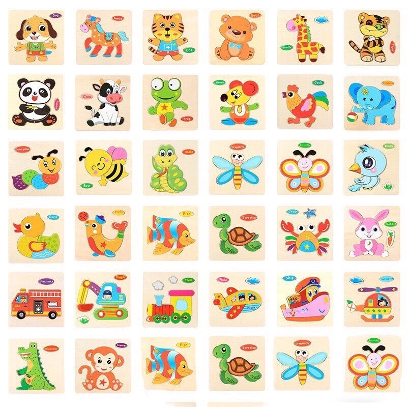 Sản phẩm là tranh ghép được chọn ngẫu nhiên tổng hợp từ các chủ đề : động vật, phương tiện giao thông và hoa quả . Vì mẫu rất nhiều nên khách không yêu cầu mẫu hay chọn chủ đề cụ thể mà sẽ được shop chọn ngẫu nhiên nhé! Cảm ơn vì sự hợp tác của các bạn. * Mô tả sản phẩm : - Kích thước: 15c*15cm - Tranh ghép cung cấp 5 – 10 mảnh ghép để bé lắp ráp thành hình ảnh của các loại động vật, phương tiện giao thông và hoa quả. - Đồ chơi gỗ Tranh ghép hình với các màu sắc sinh động, hình dáng đa dạng và dễ thương giúp các bé phát triển các giác quan, tư duy logic nhìn, nhận dạng và ghi nhớ các chi tiết , hình ảnh khác nhau cho bé.tạo cho bé những khoảng thời gian vừa học vừa chơi đan xen không nhàm chán mà lại hiệu quả. - Đồng thời trên mỗi bức tranh có tên các hình ảnh bằng Tiếng anh. - Ba mẹ có thể dành thời gian rảnh để vừa chơi cùng bé vừa dạy cho bé biết tên tiếng anh của bức tranh đó tạo cho bé những khoảng thời gian vừa học vừa chơi đan xen không nhàm chán mà lại hiệu quả.. - Chất liệu : Với chất liệu gỗ và sơn chuyên dùng trong sản xuất đồ chơi trẻ em (không phai màu, không dính màu, không hại đến da bé) cùng bề mặt nhẵn mịn, không góc cạnh, sản phẩm đảm bảo mang đến sự an toàn tuyệt đối cho bé khi sử dụng.
