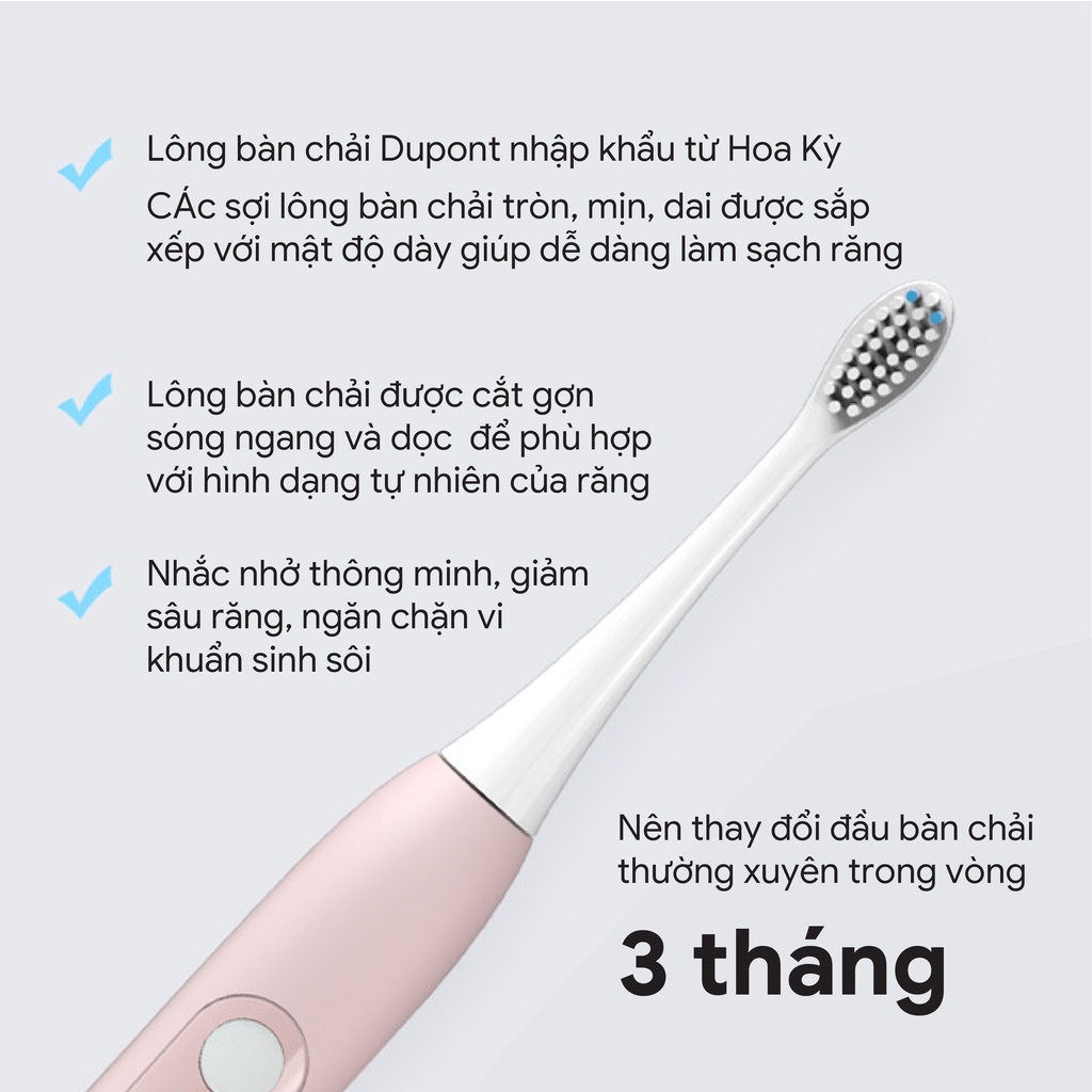 2. 𝗧𝗶́𝗻𝗵 𝗻𝗮̆𝗻𝗴 𝘀𝗮̉𝗻 𝗽𝗵𝗮̂̉𝗺: + Tần số rung: 36000l/phút + Phương thức sạc: sạc USB +Thời gian sạc: 6 tiếng + Thời gian sử dụng: 35 ngày, dung lượng pin: 500 mAh + Cách thức sử dụng: Nhấn nút công tắc để khởi động bàn chải. nhấn nút thứ 2 để chuyển đổi các chế độ khác nhau