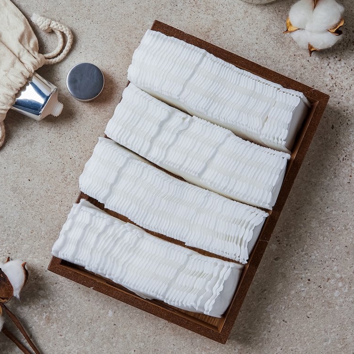 Miếng bông tẩy trang được dệt thành 2 mặt giúp tận dụng được tối đa sản phẩm, bề mặt mịn và thấm hút nhanh dung dịch tẩy trang và nước hoa hồng,..giúp tiết kiệm dung dịch không bị đổ tràn ra ngoài khi lấy.