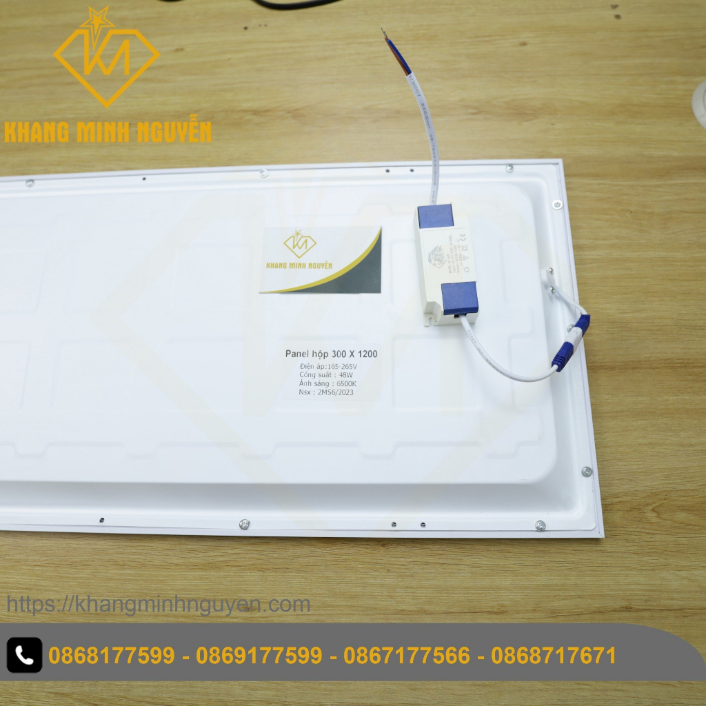 ***Thông số kỹ thuật đèn LED panel 600x600: - Xuất xứ: Trung Quốc - Điện áp đầu vào: 165-265V AC - 50/60Hz - Công suất: 48W - Màu sắc / nhiệt độ màu: Trắng / 6500K - Kích thước: 1196*296*28mm - Trong lượng: 1120g - Chiều dài dây nguồn: 20cm