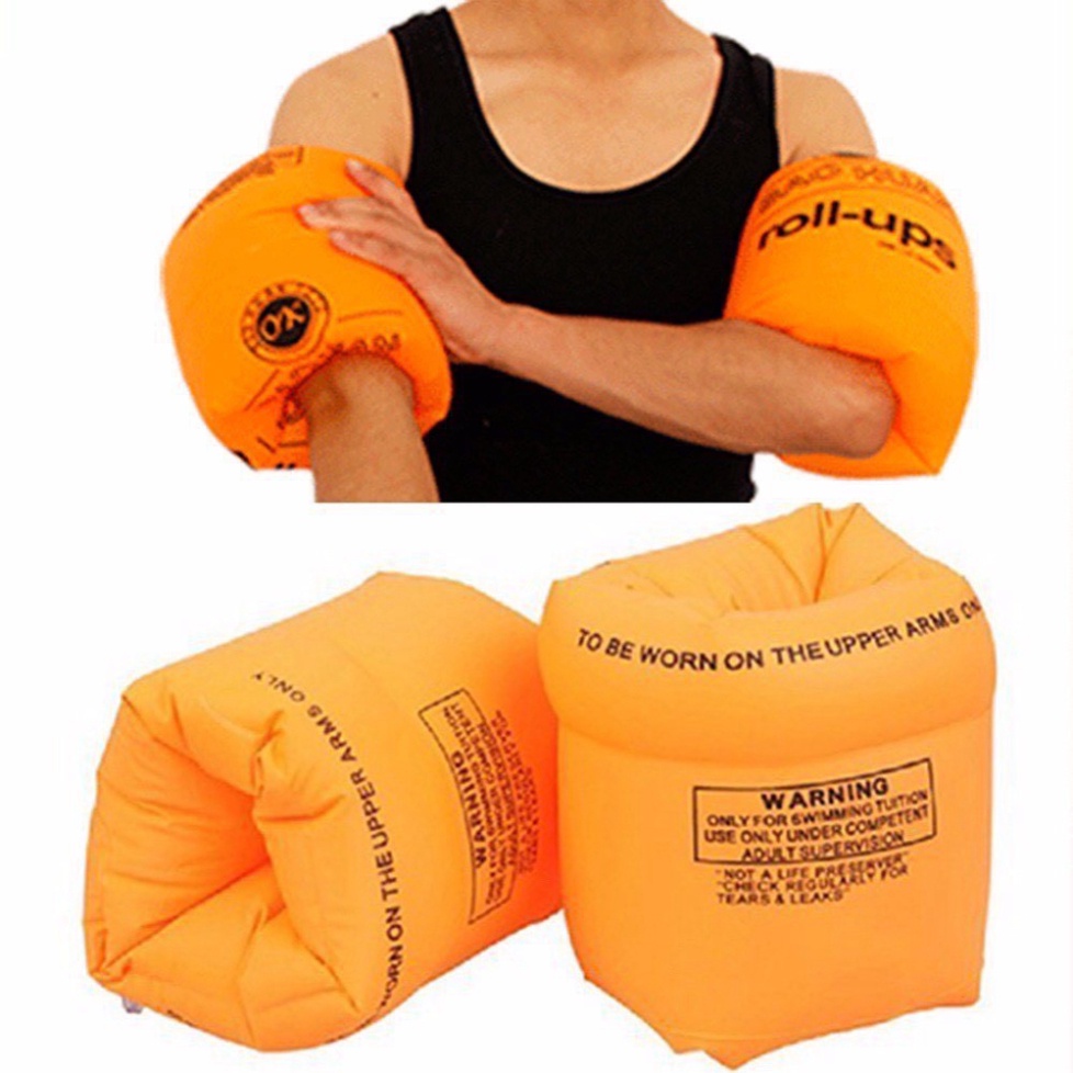 Tại Sao nói Phao tay là 1 loại phao tốt nhất cho trẻ khi tập bơi Thực tế với các dứa nhỏ nhà tôi thấy rằng khi dùng áo phao bé rất dễ bị sấp mặt xuống nước do phần lưng nổi hơn phần bụng, còn dùng phao đỡ cổ cho bé trong môi trường nước động rất dễ cho bé bị uống nước, qua kinh nghiệm 10 năm cho con và cháu đi bơi tôi thấy dùng phao tay cho bé là an toàn nhất, do được đeo ở cánh tay nên lúc nào cũng như được người lớn cầm vào hai tay bé khiến cho đầu bé luôn ở vị trí cao hơn mặt nước nên rất an toàn cho bé và giúp bé thấy an toàn hơn không còn thấy sợ nước - phao siêu nổi lượng khí ở phao có sức nổi nên đến 70kg - Năng động: việc đeo phao tay không bị vướng víu khó chịu như áo phao nên bé sẽ tự do vùng vẫy từ đó học được kỹ năng dưới nước tự 1 cách tự nhiên giúp bé nhanh biết bơi hơn -Đeo đơn giản chỉ việc bóp miệng hơi rồi thổi 2 hơi là đã bơm đượcphao cho bé khi đeo vào cho bé theo kiểu lộn như bánh xe tăng giúp phao ôm sát tay mà không bị tuột ra