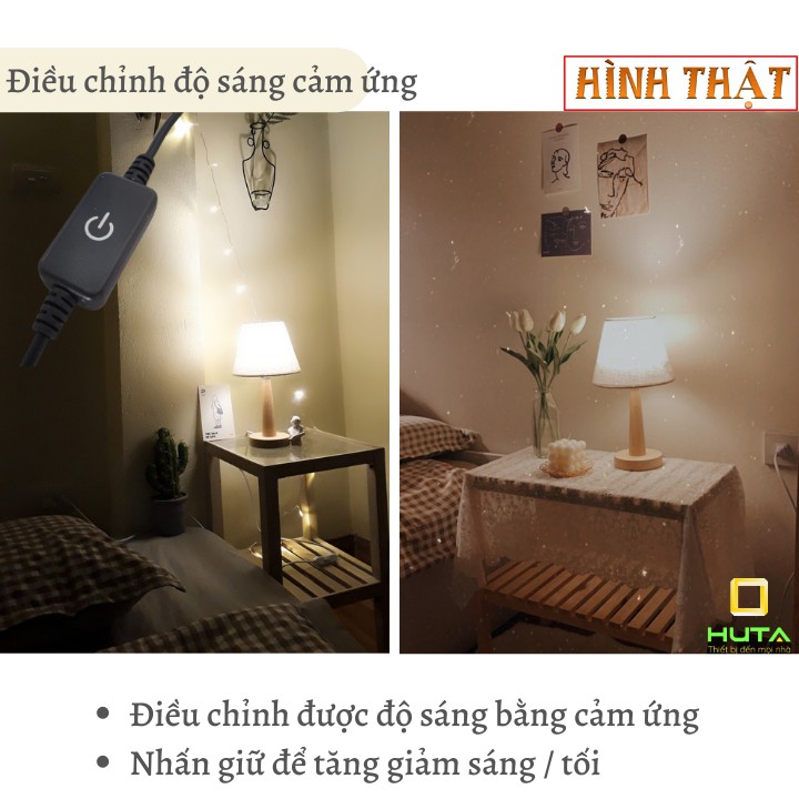 Giới thiệu COMBO 2 Đèn Ngủ Gỗ Để Bàn Dimmer Tăng Giảm Sáng, Bóng Led Decor, Vintage Hàn Quốc, Mã G2 - Shop HUTA Light For Life