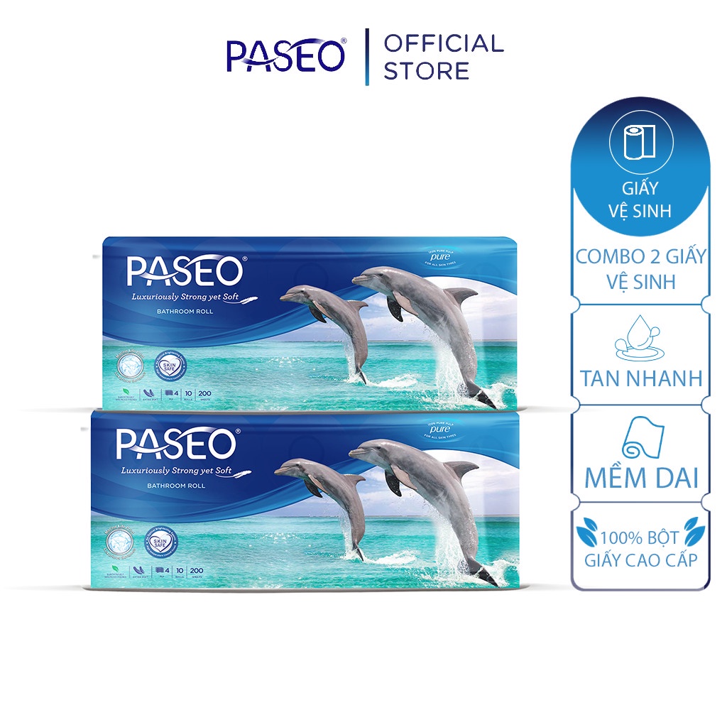 Giặt Giũ & Chăm Sóc Nhà Cửa > Giấy vệ sinh, khăn giấy > Giấy vệ sinh cuộn > Combo 2 Giấy vệ sinh PASEO Dolphin 10 cuộn 4 lớp in hoa văn độc đáo, mềm dai, tan nhanh trong n