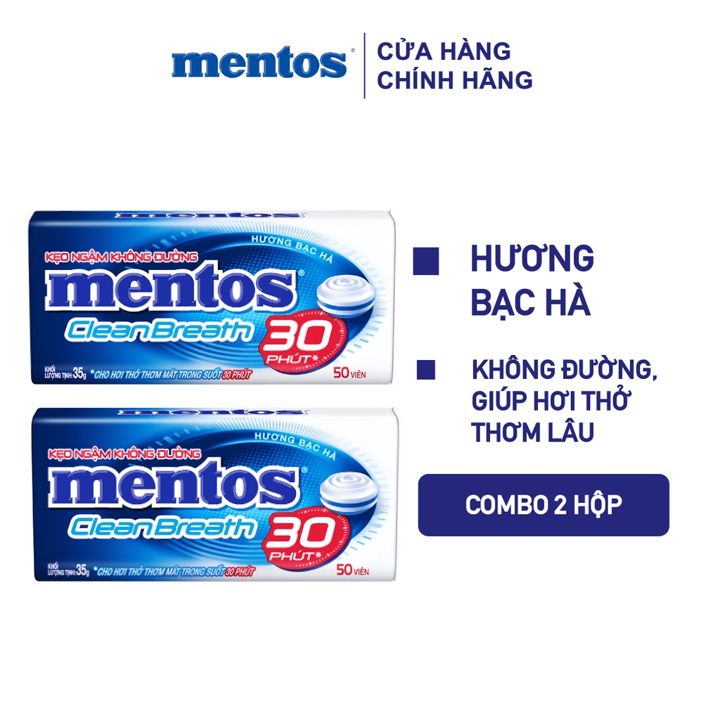 Giới thiệu Combo 2 hộp thiếc kẹo Ngậm Không Đường Mentos Clean Breath hương bạc hà