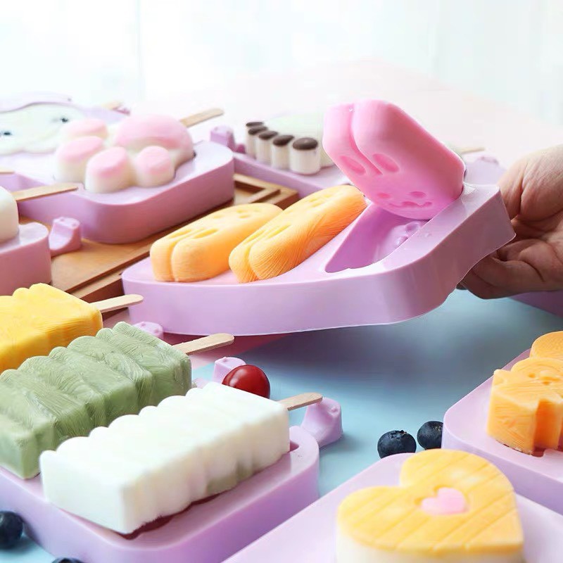 Giới thiệu Combo 2 khuôn làm kem bằng silicon hình thù dễ thương tặng 100 que gỗ