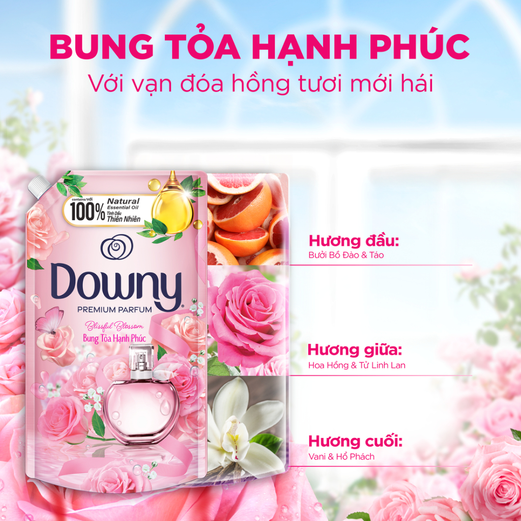 Giới thiệu Combo 2 Túi Nước Xả Vải Downy Tinh Dầu Nước Hoa Cao Cấp Hương Bung Tỏa Hạnh Phúc 3L/túi