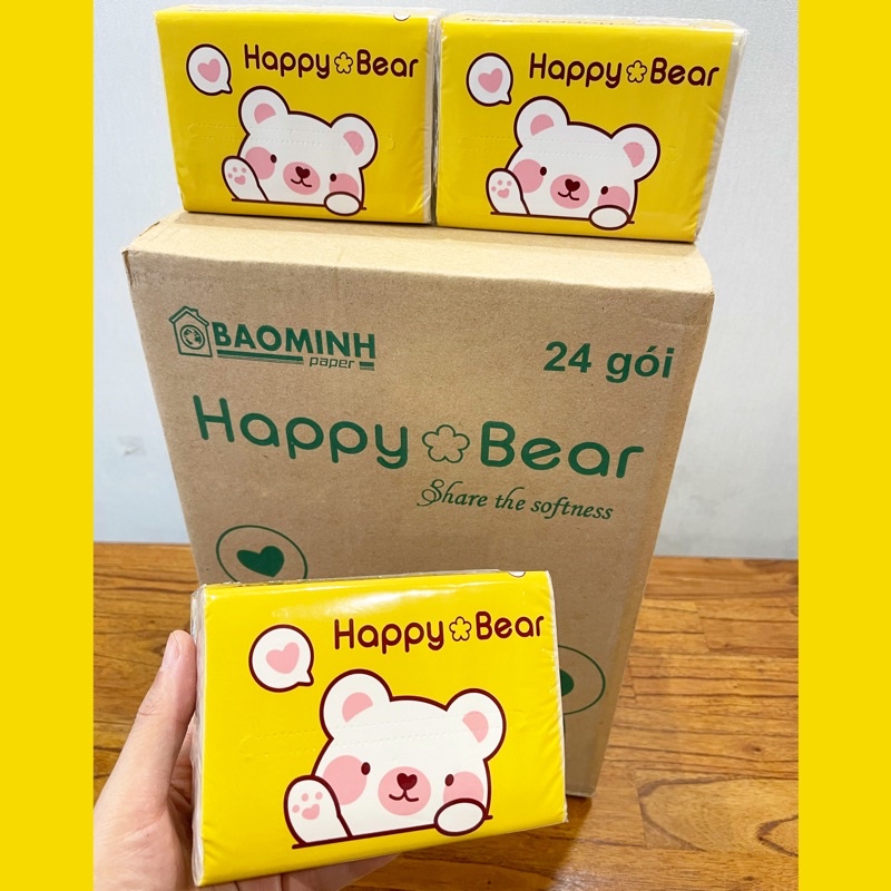 Giới thiệu Combo 24 Gói Giấy ăn HAPPY BEAR Chất Dai mềm 3 Lớp