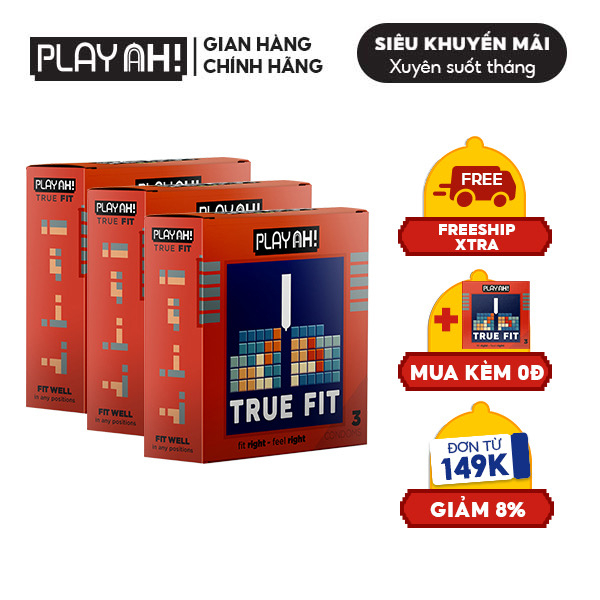 Giới thiệu Combo 3 Bao Cao Su PLAYAH True Fit Ôm Sát 3 Hộp 3 Bao size 49mm