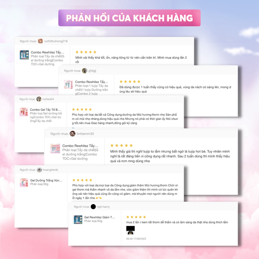 Giới thiệu Combo 3 Gel Tẩy Tế Bào Chết REWHITEZ Define Rose, Gabriella, Happiness Giúp Dưỡng Hồng Vùng Nhạy Cảm Tuýp 50g