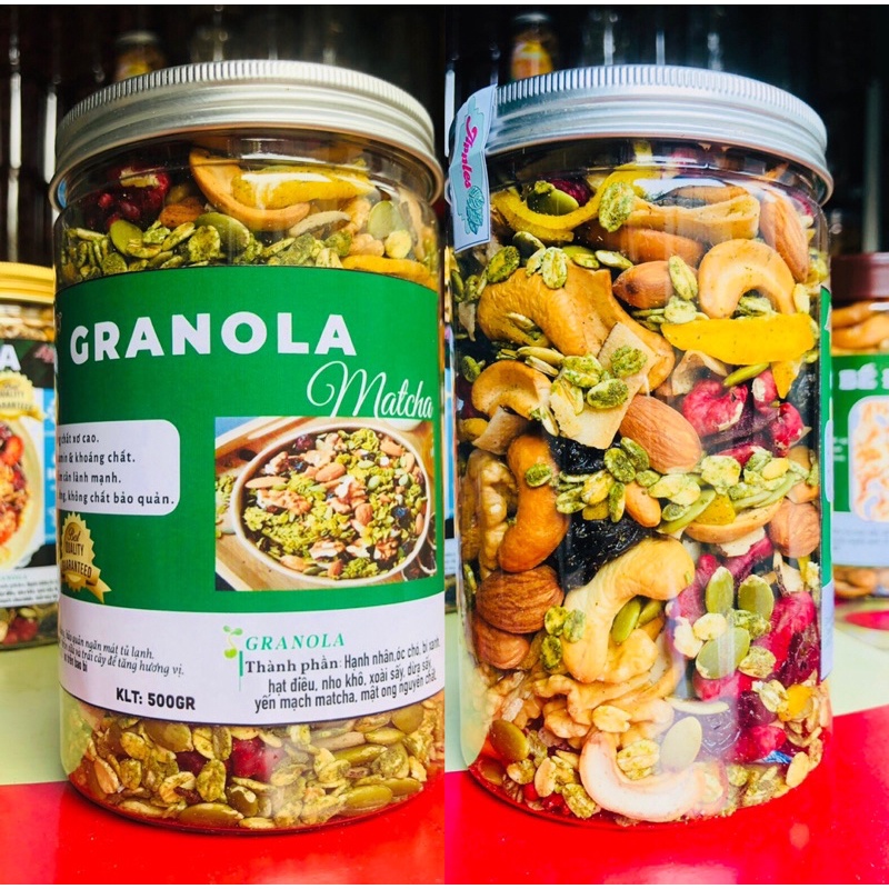 COMBO GRANOLA 3 VỊ/ 3 HỘP: TRUYỀN THỐNG - CHOCOLATE - MATCHA 💥💥Giá Siêu Sale: 339k 💥💥 Granola siêu hạt thơm ngon 500gr, Ngũ cốc giảm cân không đường tốt cho người ăn kiêng, giữ dáng, đẹp da, tăng cơ.. phù hợp với mọi lứa tuổi: - Granola, sản phẩm của Apple: 1. MIX 10 LOẠI HẠT & QUẢ VỚI 3 LOẠI HƯƠNG VỊ : TRUYỀN THỐNG, CHOCOLATE & MATCHA TRÀ XANH: - (1) Yến mạch Úc sấy giòn rụm- (10% yến mạch) - (2) Hạt óc chó vàng, đỏ - (3) Hạt bí xanh - (4) Hạt Điều - (5) Hạt hạnh nhân - (6) Xoài sấy dẻo - (7) Nho khô - (8) Dừa khô -(9) Hạt hướng dương